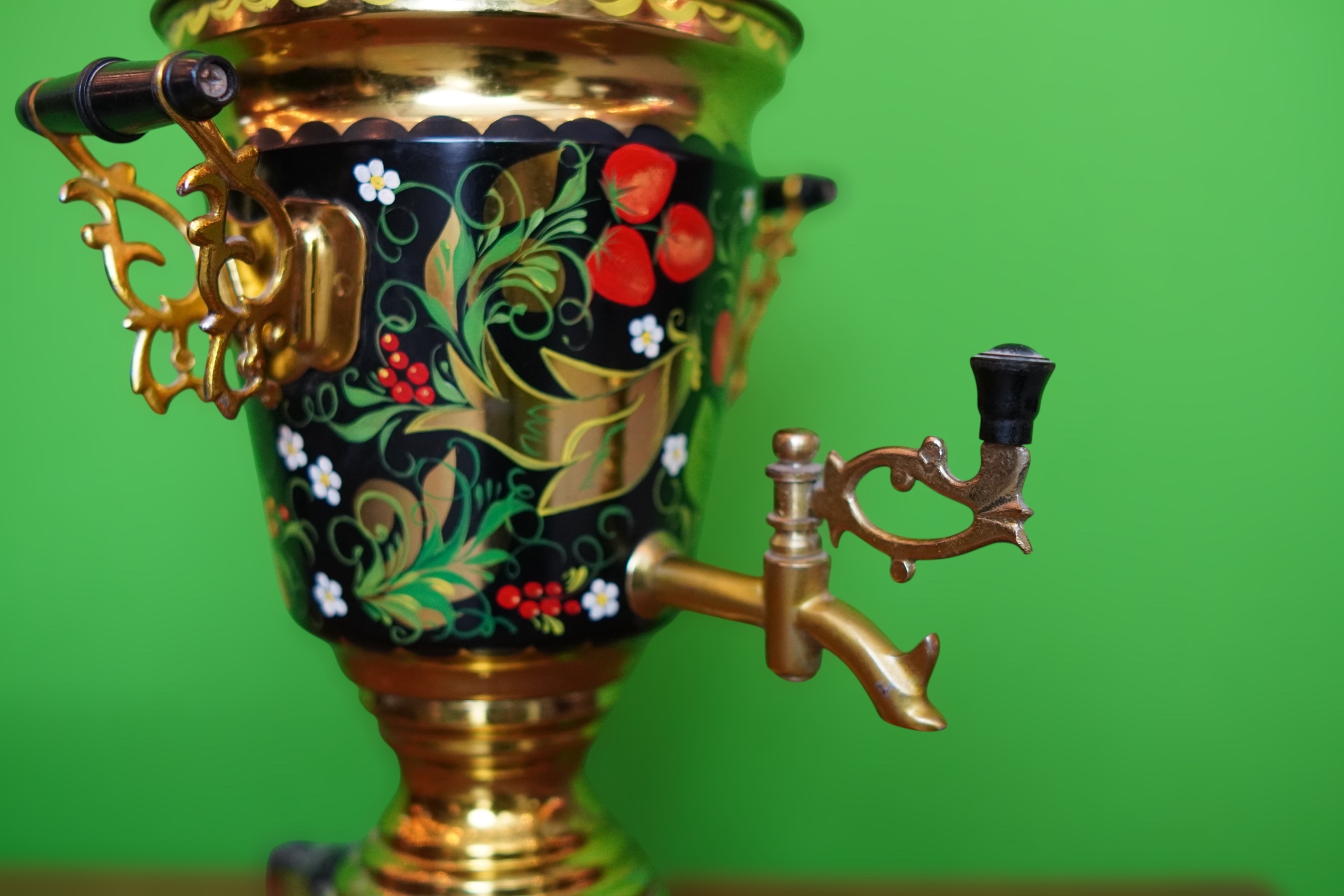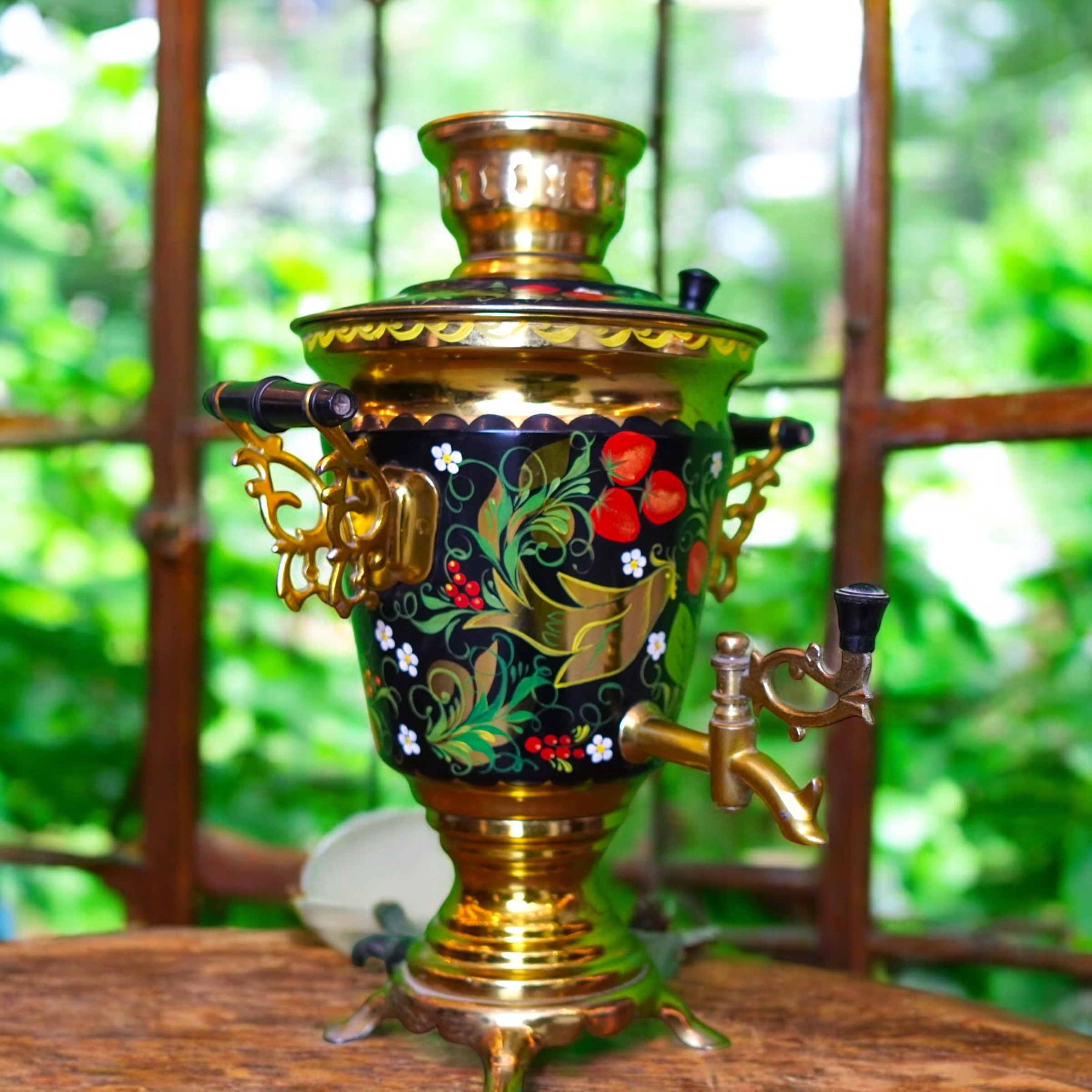 Hand-Painted Russian Samovar – Floral Gold & Black